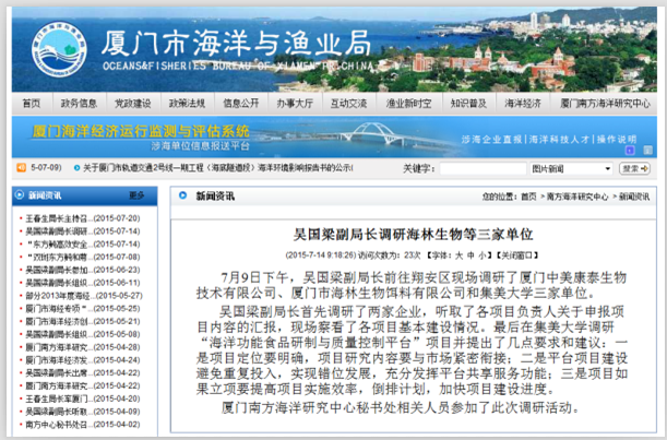 WuGuoLiang who is vice director of Xiamen Oceanic and fishery Department visited our company